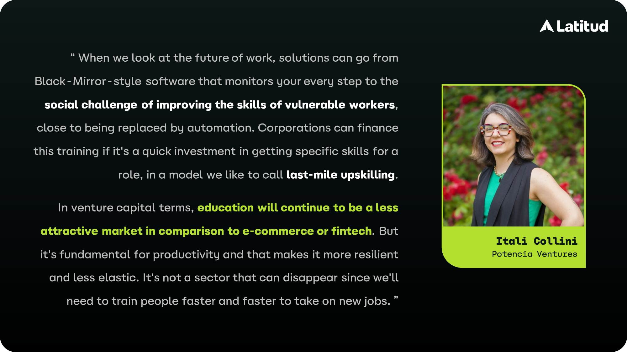 The Covid-19 pandemic forced schools and a lot of workplaces to go digital, opening an opportunity to digitalize traditional education and workforce development. Even if that experience wasn't ideal around the world, including Latin America, there's no turning back in digital literacy and adoption. Edtechs can leverage the need to update and improve the education sector.